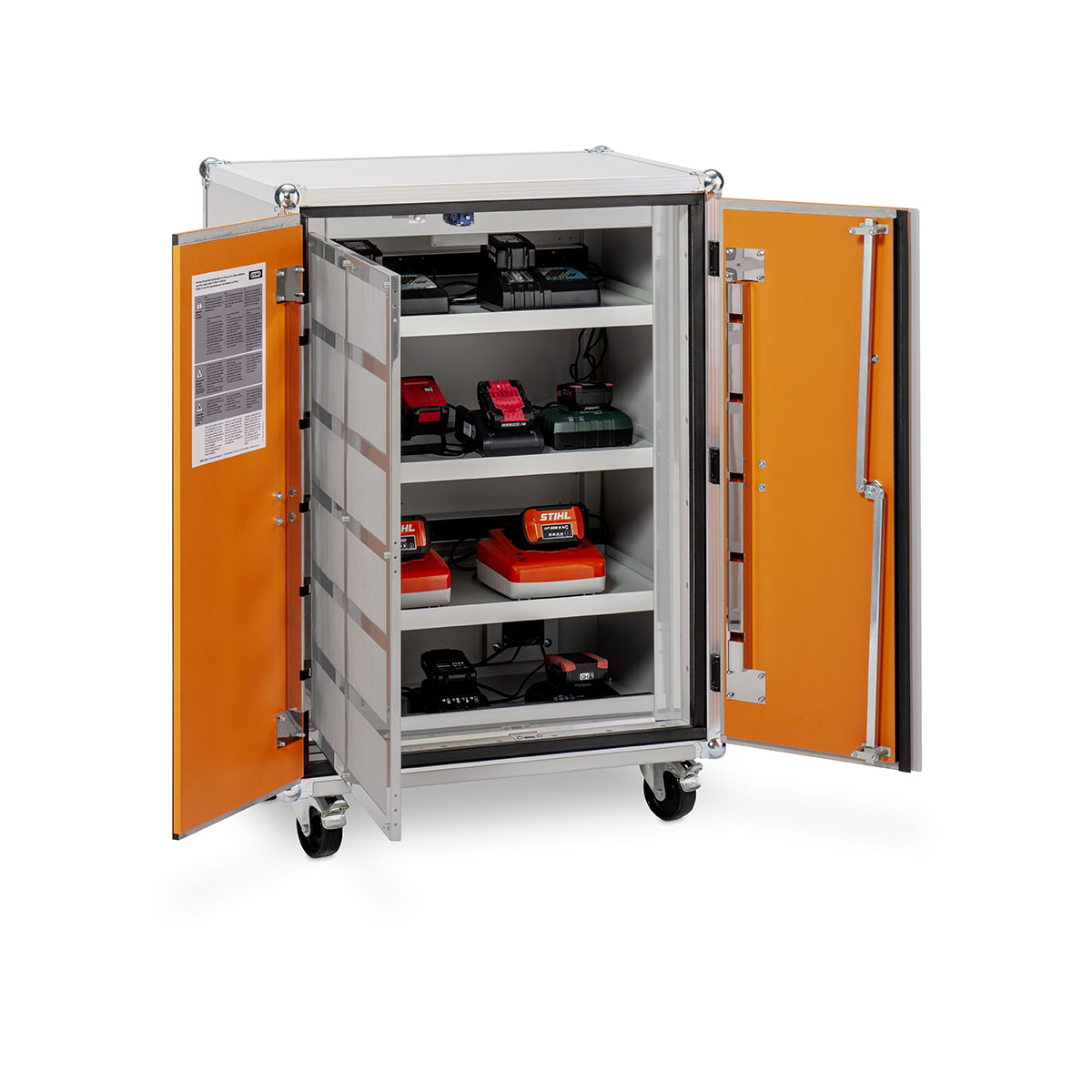 Feuer- und Explosionswiderstandfähiger Sicherheitsschrank, der speziell zur Lagerung und Laden von Lithium-Ionen-Batterien geeignet ist. Getestet und geprüft nach VDMA Einheitsblatt 24994:2024-08 sicheres Lagern und Laden von Lithium-Ionen-Batterien bis 3 kWh – ideal für Anwendungen mit hohem Energiebedarf. höchste Sicherheit im Brandfall – hält einem Batteriebrand stand und gewährleistet kein Austreten von Flammen und Funken. modulares Baukastensystem – kombinier- und stapelbar mit weiteren lockEX-Baureihen für maximale Flexibilität und Erweiterbarkeit. patentrechtlich geschütztes Druckentlastungssystem lockEX propagationsverhindernde Lagerebenen – verhindern die Ausbreitung von Bränden zwischen einzelnen Batteriemodulen. Anbindung an zentrale Brandmeldeanlage (BMA) – für nahtlose Integration in bestehende Sicherheitsinfrastruktur.