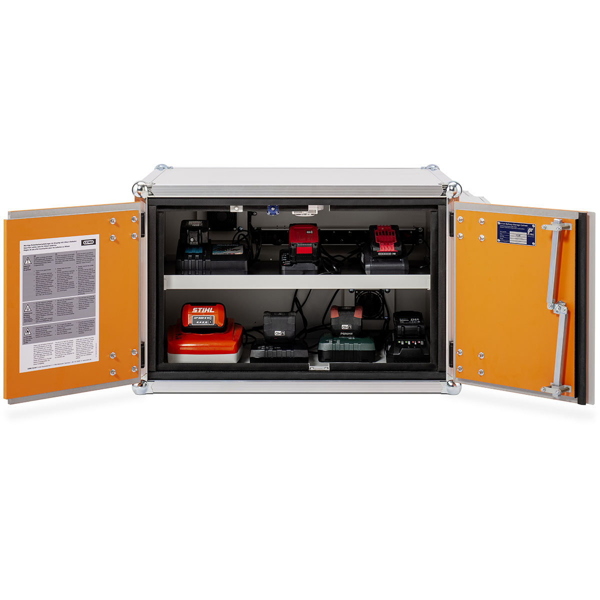 Feuer- und Explosionswiderstandfähiger Sicherheitsschrank, der speziell zur Lagerung und Laden von Lithium-Ionen-Batterien geeignet ist. zertifiziert nach VDMA Einheitsblatt 24994:2024-08 sicheres Lagern und Laden von Lithium-Ionen-Batterien bis 3 kWh – ideal für Anwendungen mit hohem Energiebedarf. höchste Sicherheit im Brandfall – hält einem Batteriebrand stand und gewährleistet kein Austreten von Flammen und Funken. modulares Baukastensystem – kombinier- und stapelbar mit weiteren lockEX-Baureihen für maximale Flexibilität und Erweiterbarkeit. patentrechtlich geschütztes Druckentlastungssystem lockEX propagationsverhindernde Lagerebenen – verhindern die Ausbreitung von Bränden zwischen einzelnen Batteriemodulen. Anbindung an zentrale Brandmeldeanlage (BMA) – für nahtlose Integration in bestehende Sicherheitsinfrastruktur. flexibel vernetzbares System – Kommunikation wahlweise über WLAN oder SMS für maximale Erreichbarkeit, auch ohne Internetverbindung