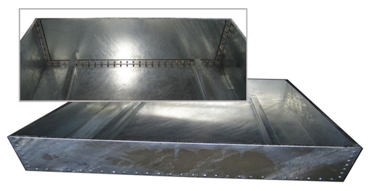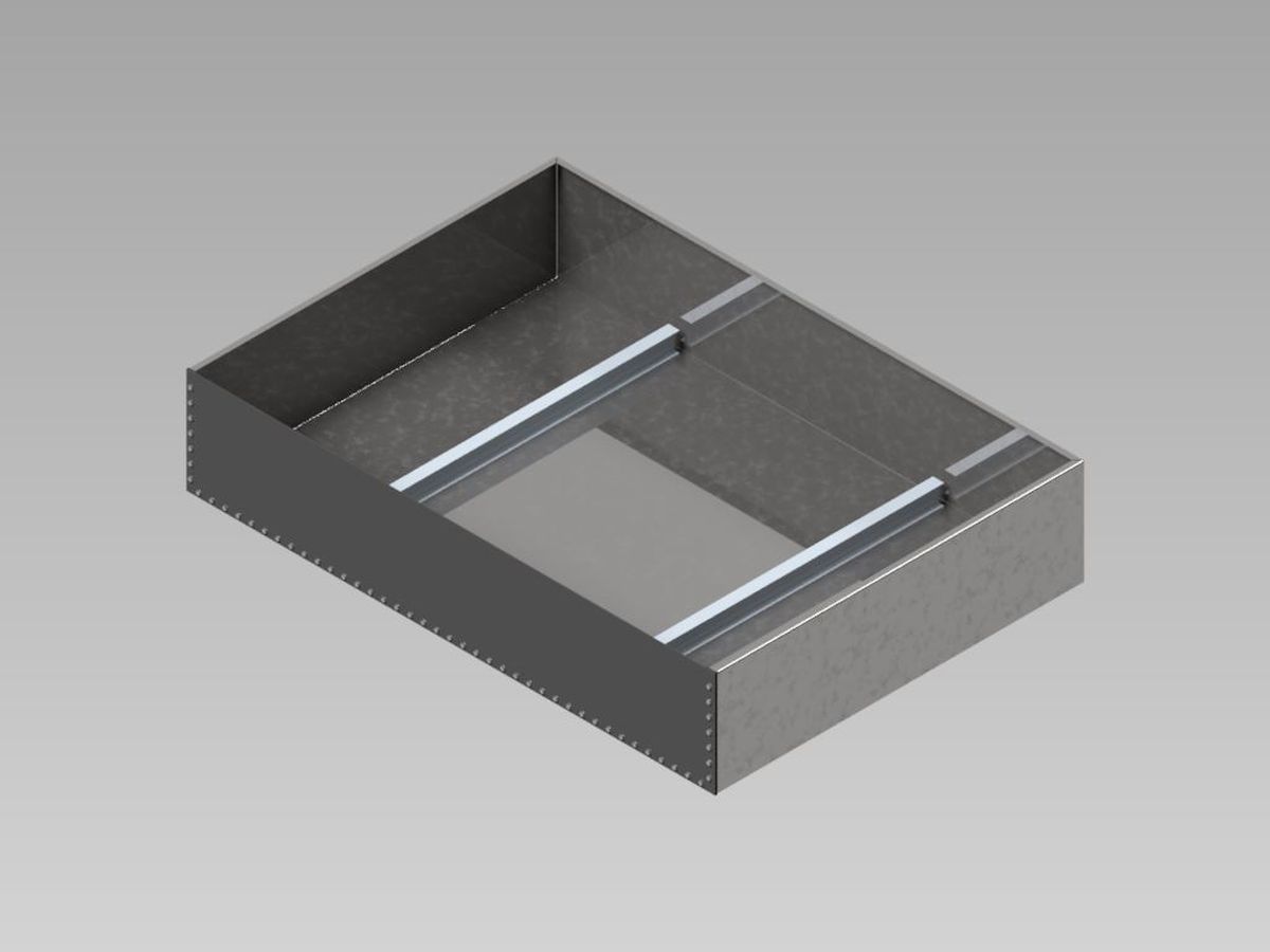 in Anlehnung an die Baumusterprüfung nach StawaR, mit Protecto Wannenprüfzeugnis Verschraubungen aus verzinkten Blindnietmuttern und Sechskantschrauben, kadmiert Fahrschienen aus IPE 80 Profil, Länge: 1.350 mm (lose beigelegt) U-Profil-Dichtungen aus einem Stück mit gestanzten Löchern nach Maß Wannenwerkstoff: Stahl, 1.0038 Materialstärke: 3 mm Oberfläche: feuerverzinkt